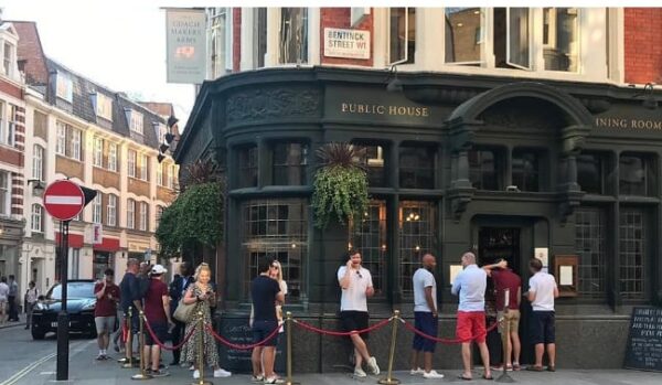 Algunos pubs, como los de la cadena Wetherspoons, ofrecían vasos de cerveza cuyo precio promedio es de 5 libras (unos 7 dólares) a 99 peniques (1,3 dólares), para evitar tener que tirar litros de esa bebida tras el cierre de sus locales.