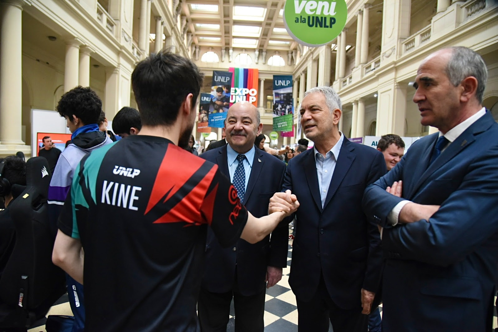 Este mediodía, el jefe comunal recorrió los diferentes stands junto al presidente de la casa de estudios platense, Martín López Armengol; el vicepresidente Académico, Fernando Tauber; y decanos y autoridades universitarias.