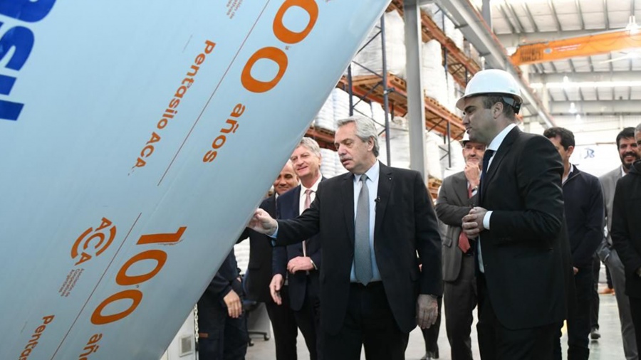 Acompañado por el gobernador Ziliotto, y la intendenta local, Fernanda Alonso, el mandatario visitó junto a su comitiva la fábrica “Aca Pentasilo”, donde la Asociación de Cooperativas Argentinas produce y comercializa entre 50 y 55 mil silobolsas y films de polietileno para el agro y la industria al año, lo que representa una transformación de más de 6.000 toneladas de polietileno, se informó oficialmente.