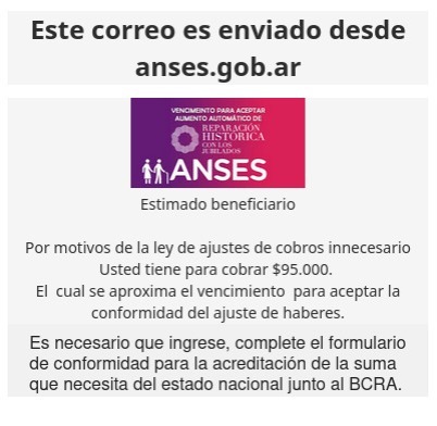 Por estos motivos, la ANSES pide desestimar y denunciar toda publicación en redes sociales y correos electrónicos que remitan a formularios sospechosos, no verificables y/o cualquier invitación a acceder mediante un enlace simple a cualquier sitio web que no sea www.anses.gob.ar.