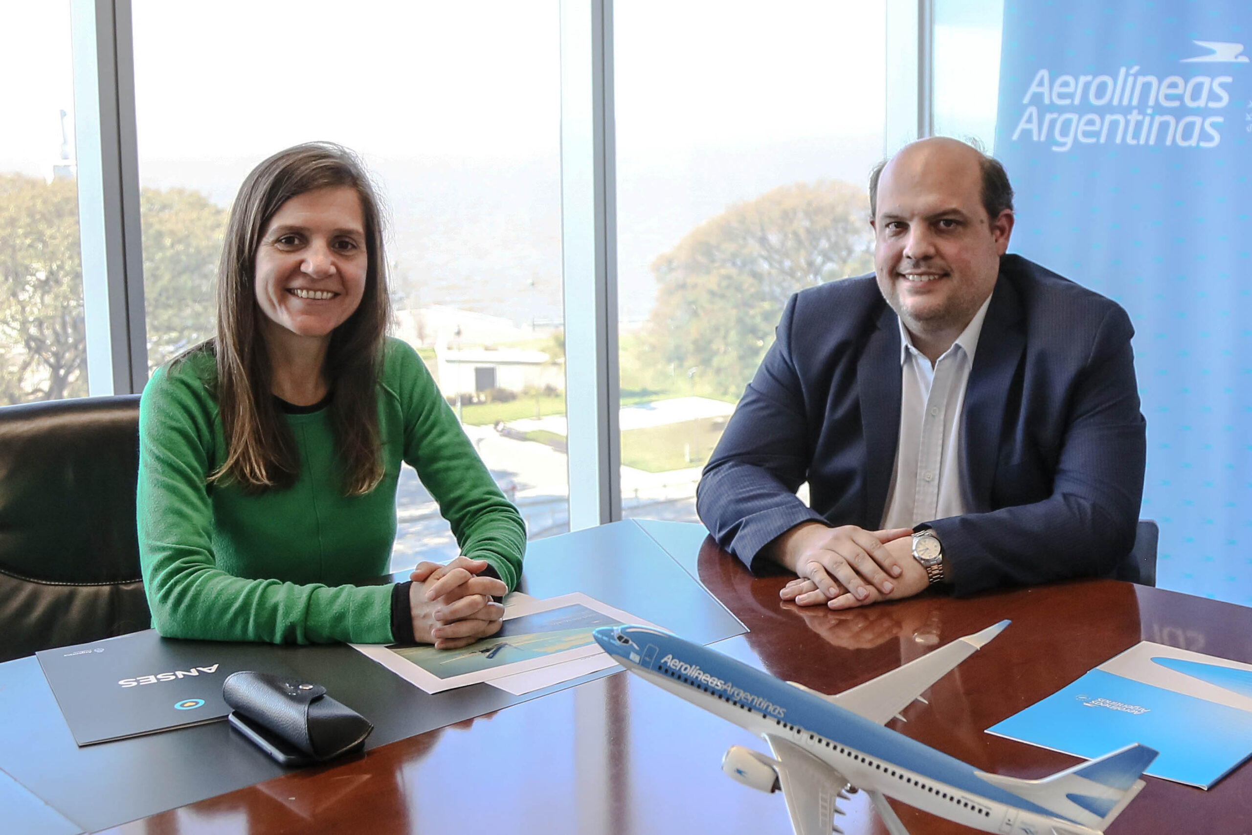 La directora ejecutiva de ANSES, Fernanda Raverta, junto al presidente de Aerolíneas Argentinas, Pablo Ceriani, anunciaron que la aerolínea de bandera otorgará un descuento especial del 20 por ciento para jubilados y pensionados de ANSES, quienes además podrán viajar con un acompañante beneficiario del mismo descuento.