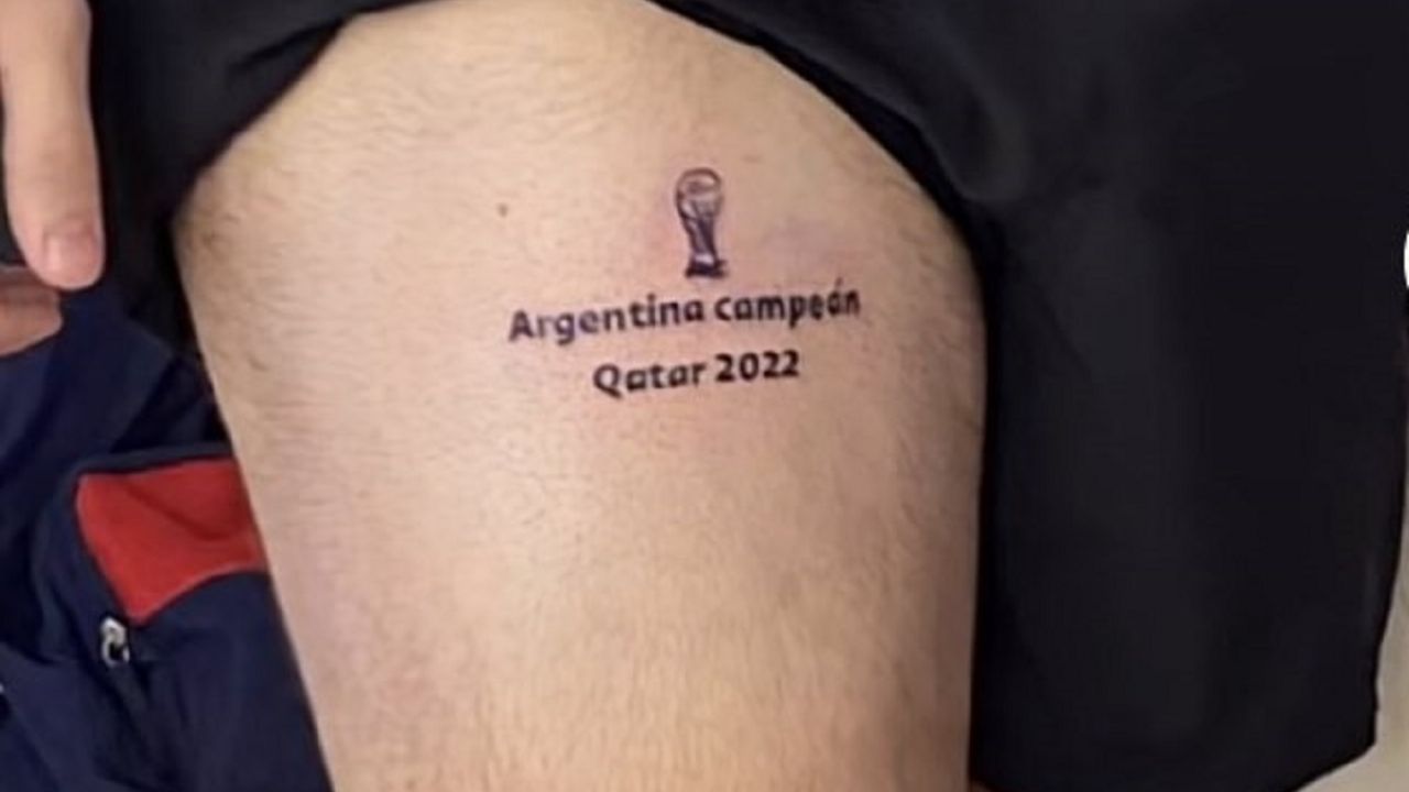 El usuario Juanidevido compartió un video en el que muestra un tatuaje con la frase: “Argentina campeón Qatar 2022”. En la publicación, que desató una ola de comentarios en TikTok, el aficionado de la Albiceleste de Leo Messi escribió “Es un hecho, Argentina campeón en Qatar”.
