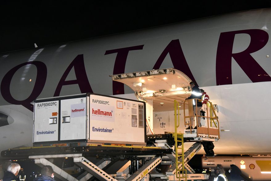 El cargamento con las 200.000 dosis llegaron a las 2.20 de hoy a Ezeiza, en el vuelo QR8157 de Qatar, se informó oficialmente.
