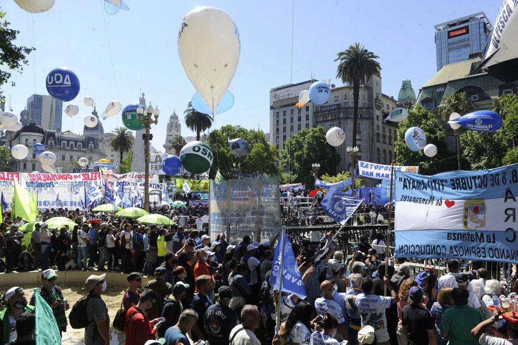 Desde el Obelisco, donde se concentraron en las primeras horas de la tarde, marcharon las columnas sindicales, en medio de complicaciones del tránsito. Las expresiones de la CGT y las dos CTA avanzaron por Diagonal Sur, encabezadas por gremios docentes y estatales de UPCN.