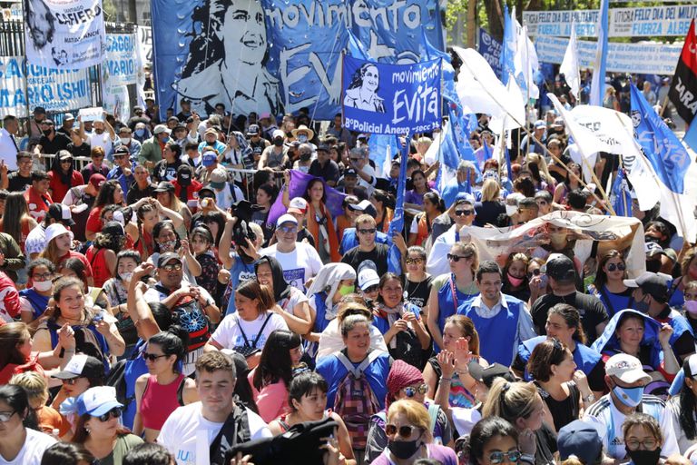 En ese marco, una gruesa y muy ruidosa columna del Movimiento Evita ingresaba poco después de las 14 por la avenida Presidente Roque Saenz Peña (Diagonal Norte) rumbo a Plaza de Mayo.