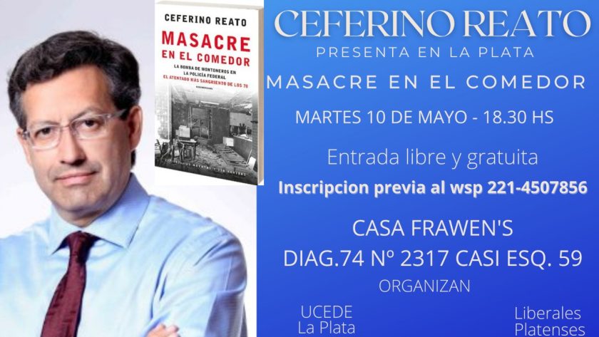 En un evento organizado en forma conjunta por la UCEDE de La Plata y Liberales Platenses, ayer visitó nuestra ciudad el reconocido periodista y escritor Ceferino Reato, presentando su última obra “Masacre en el Comedor”.
