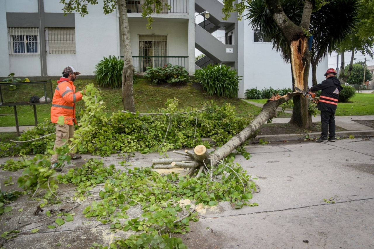 Debido al alerta meteorológico de hoy, el Municipio de General Pueyrredon -desde diferentes áreas- trabajó principalmente en el retiro de 47 árboles y gajos caídos de gran porte, despejando la vía pública.