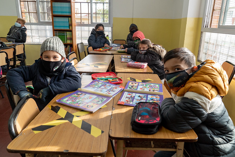 Durante la clase se mantiene lo que se denomina “ventilación cruzada” (puertas y ventanas abiertas). Tanto la entrada como la salida y los recreos se hacen en forma escalonada (por grado) para evitar aglomeramientos.