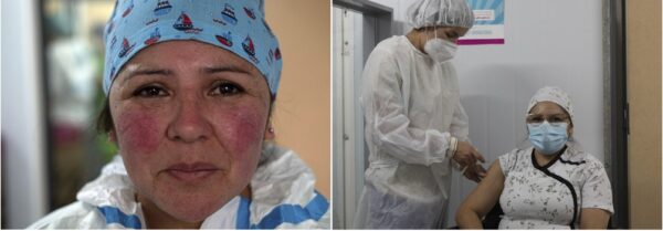 «El virus nos ha tocado a todos de cerca, a nosotros, a nuestros familiares y amigos.Fue un año muy triste, muy difícil para todos, tanto para los que se contagiaron como para los que no. Si bien no me he contagiado, mi temor de siempre fue llevar el virus a casa, enfermar a mi gente. El miedo a morir. Con la vacuna, (en el hospital modular todos) tenemos la esperanza de no contagiarnos o al menos que, si llegamos a hacerlo, (el virus) no nos mate porque hemos perdido compañeros (y) es muy triste, muy duro. La vacuna nos da la esperanza de seguir con vida. Me he aplicado la primera dosis (de la Sputnik V) y no me ha pasado nada. Algunos compañeros tuvieron síntomas, pero fueron leves. Queremos concientizar a la gente que se cuide».