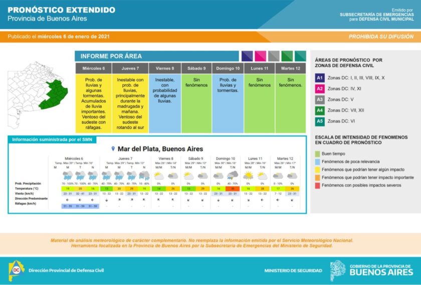 Según el Servicio Meteorológico Nacional, para hoy se esperan lluvias persistentes en centro y sur de la Provincia, incluyendo al Partido de General Pueyrredon.