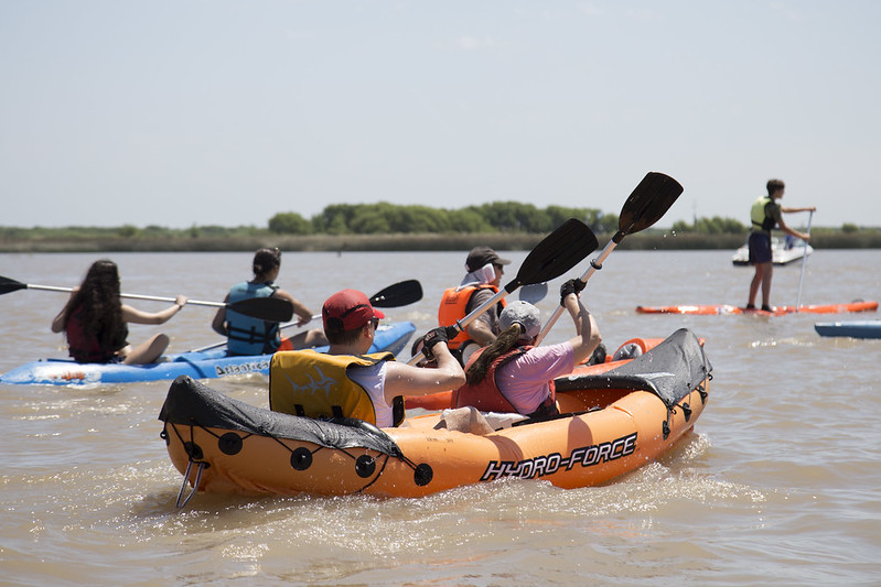(San Isidro, 2 de noviembre de 2021). Con el objetivo de fomentar la vida saludable al aire libre, el Municipio organizó el sábado una travesía gratuita en canotaje. Un centenar de vecinos participaron de la actividad y recorrieron las nuevas islas que surgieron en San Isidro.