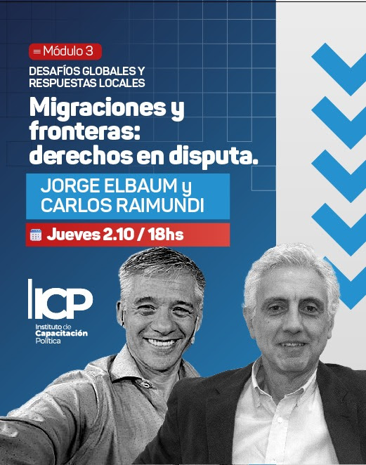 El Instituto de Capacitación Política (ICP) abrirá este jueves 2 de octubre a las 18:00 el Módulo 3 de su Curso de Formación Política con la clase gratuita “Migraciones y fronteras: derechos en disputa”, a cargo de Jorge Elbaum y Carlos Raimundi.