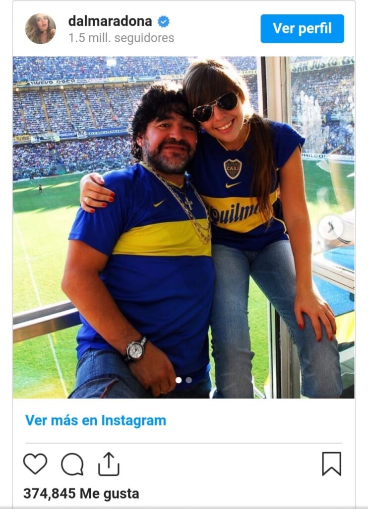 La hija de Diego resaltó la constantes muestras de afecto que recibió el último domingo en ocasión del partido que Boca le ganó a Newell’s Old Boys por 2-0 con dos goles del colombiano Edwin Cardona, por la quinta fecha del torneo de primera división del fútbol argentino.