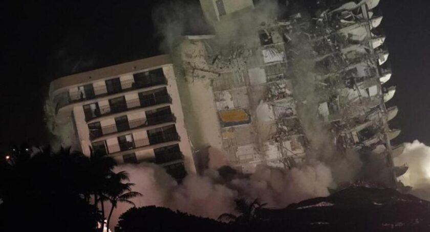 Diez días después del colapso de la mayor parte de su estructura, el resto de un edificio de 12 pisos de Surfside, cerca de Miami, fue demolido en la noche del domingo con una explosión controlada, antes de la llegada de la tormenta tropical Elsa a Florida.