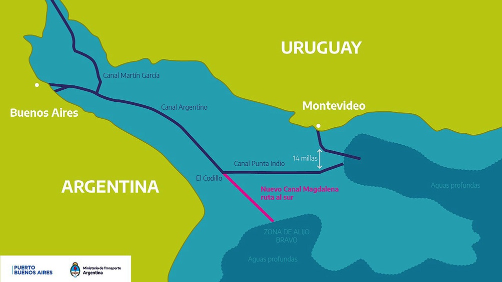 Agregó que «es la salida natura del Río de la Plata», con lo cual, afirmó, «es más fácil el mantenimiento del dragado».