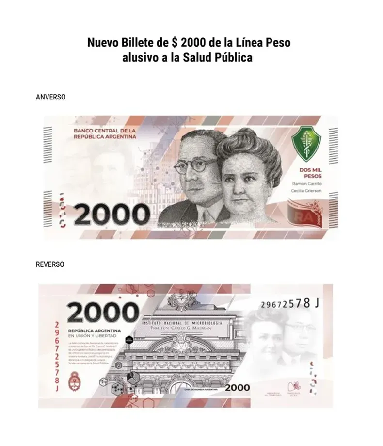Luego de que el Directorio del Banco Central de la República Argentina (BCRA) aprobara la incorporación de un nuevo billete de $2000, donde estarán las figuras de Cecilia Grierson y Ramón Carrillo, los mismos ya llegaron a los bancos y se fijó fecha para que entre en circulación.