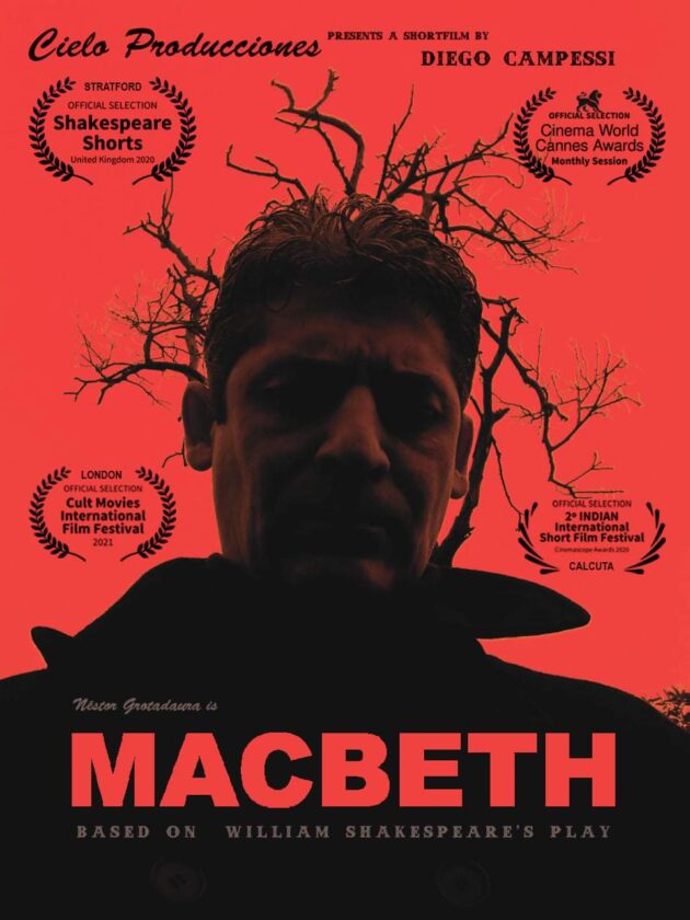 El género del cortometraje es ficción dramático con toques de surrealismo y ya ha participado el pasado Noviembre, en competencia oficial en el festival internacional de cortos “Shakespeare Shorts”, en Stratford-upon-Avon, realizado por la Casa-Museo Oficial de William Shakespeare, y “Macbeth” de Diego Campessi, fue seleccionado de entre 150 países del mundo y quedó finalista entre los mejores 14 cortos, con el actor inglés Kenneth Branagh como jurado principal.
