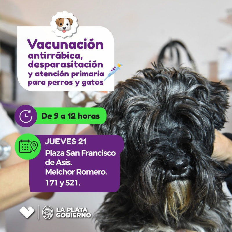 En el marco de las acciones tendientes a promover la protección animal y la tenencia responsable de mascotas, el próximo jueves la Municipalidad de La Plata llevará a cabo una nueva jornada de asistencia veterinaria, vacunación y desparasitación gratuita para perros y gatos en Melchor Romero.