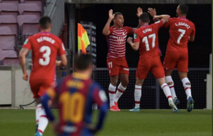 Barcelona, con un gol de Lionel Messi, cayó este jueves ante Granada por 2 a 1 como local, en un partido pendiente de la 33ra. fecha de la Liga de España, que lidera Atlético de Madrid.