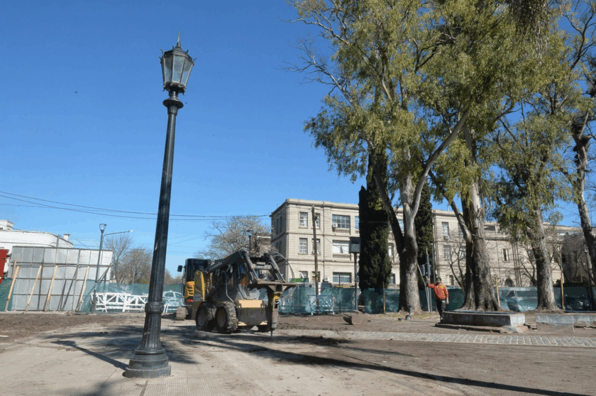 Ya se retiró el monumento a Cornelio Saavedra para su puesta en valor, comenzaron las tareas de levantamiento de veredas y finalizó el cerramiento perimetral.