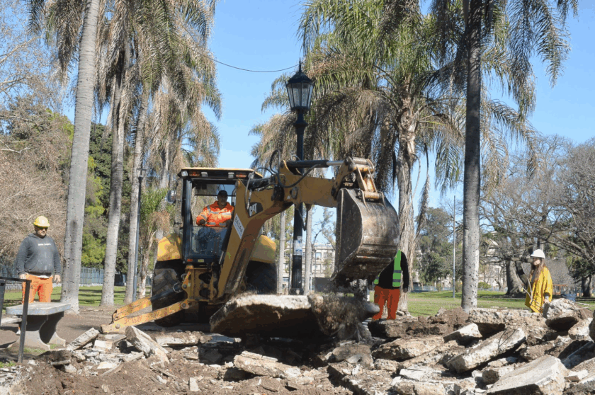 Como parte de la puesta en valor del Parque Saavedra, la Municipalidad de La Plata retiró el monumento a Cornelio Saavedra para su restauración, avanza con el levantamiento de veredas para concretar su recambio y finalizó el cerramiento perimetral.