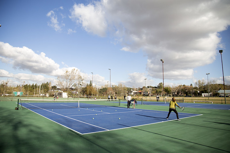 “Las canchas quedaron espectaculares; parece que estamos en el Abierto de Estados Unidos con el nuevo color azul del cemento”, señaló entre risas Jimena Gómez, vecina de Beccar que volvió a jugar al tenis tras la renovación que hizo el Municipio de San Isidro en las canchas del Campo de Deportes N° 6 (Roque Sáenz Peña y del Fomentista).