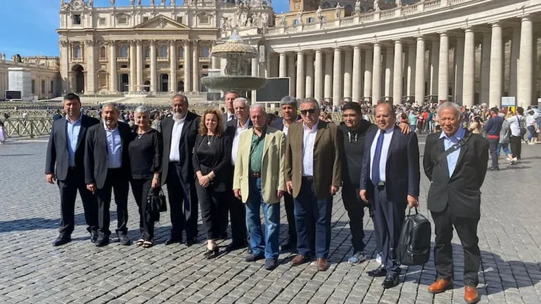 El Papa en su primer día de audiencias matinales, en la biblioteca del Palacio Pontifico, recibió este lunes 16, por primera vez a la más encumbrada comitiva de la Confederación General del Trabajo (CGT), que incorporó a dos mujeres sindicalistas y al secretario general del sindicato de la economía popular conocido por la sigla UTEP.