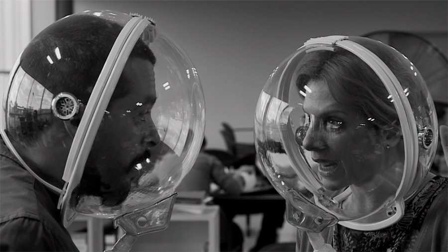 Y la película luego se ocupa de ese todo introduciendo una evento inesperado, que determina que la humanidad se vea obligada a usar una burbuja plástica para poder respirar.