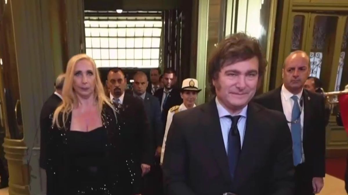 El presidente Javier Milei participaba esta noche de la gala presidencial de asunción en el Teatro Colón, acompañado por dirigentes políticos y referentes artísticos, que disfrutaban una puesta en escena que inició con «Balada para un loco».
