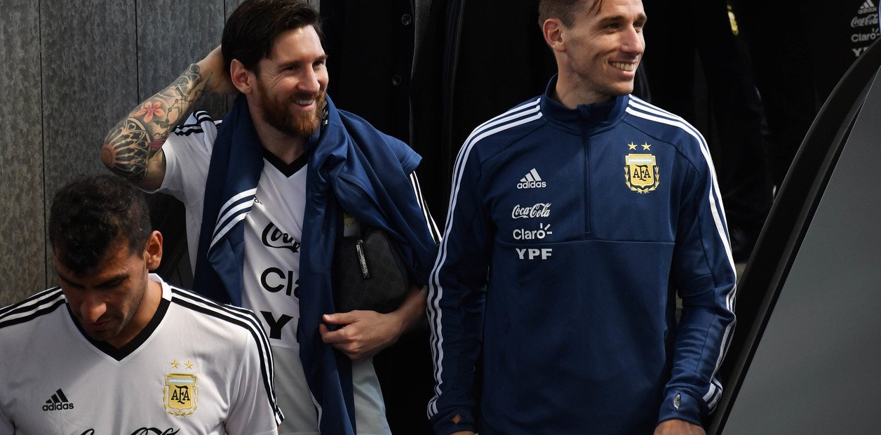 Con Messi a la cabeza exhibiendo una ancha sonrisa y luego de una supervisión previa del presidente de AFA, Claudio Tapia, todos los integrantes del plantel se acercaron hasta los límites del vallado mencionado y se saludaron a corta distancia con los aficionados, en un intercambio plagado de genuino afecto y reconocimiento de ambas partes, mientras atronaba el siempre entrañable «dale campeón, dale campeón».