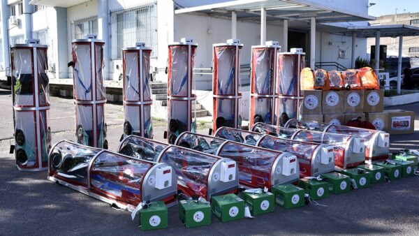 El equipamiento donado consta de 22 cápsulas, de las cuales 9 son flexibles y 13 rígidas, elementos que se utilizan para disminuir el riesgo de contagio en situaciones de traslado de pacientes vía terrestre o aérea; y 13 generadores de ozono.