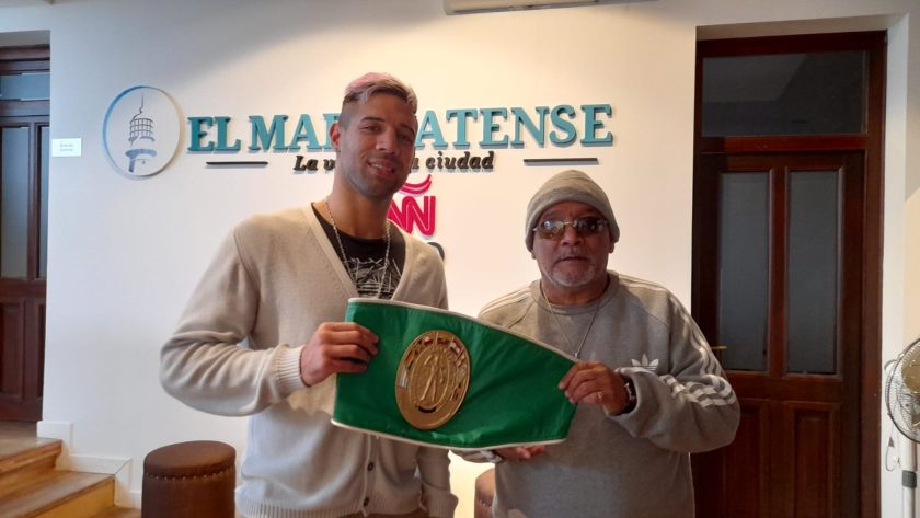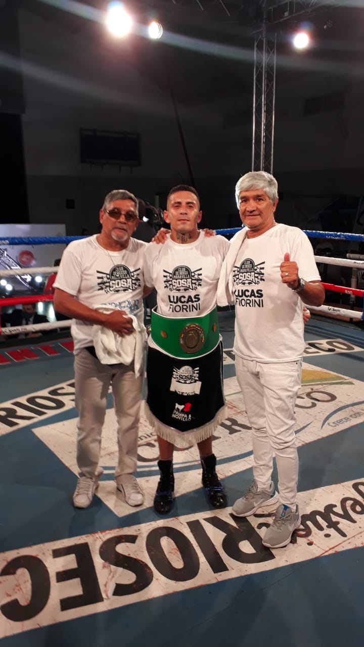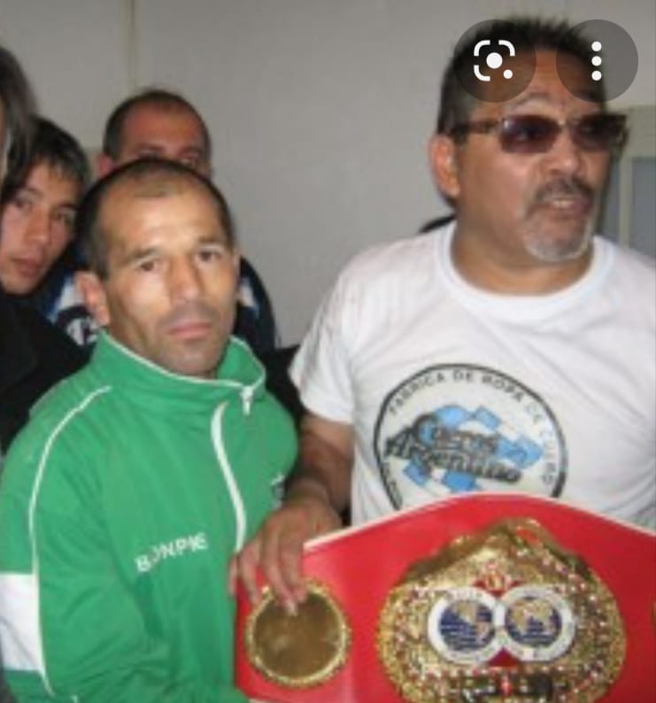 Matías Leiva, Campeón fedebol ligero de la Asociación Mundial de boxeo y Sudamericano súper pluma , junto a sus entrenadores Fernando Sosa y el Gato Olivera