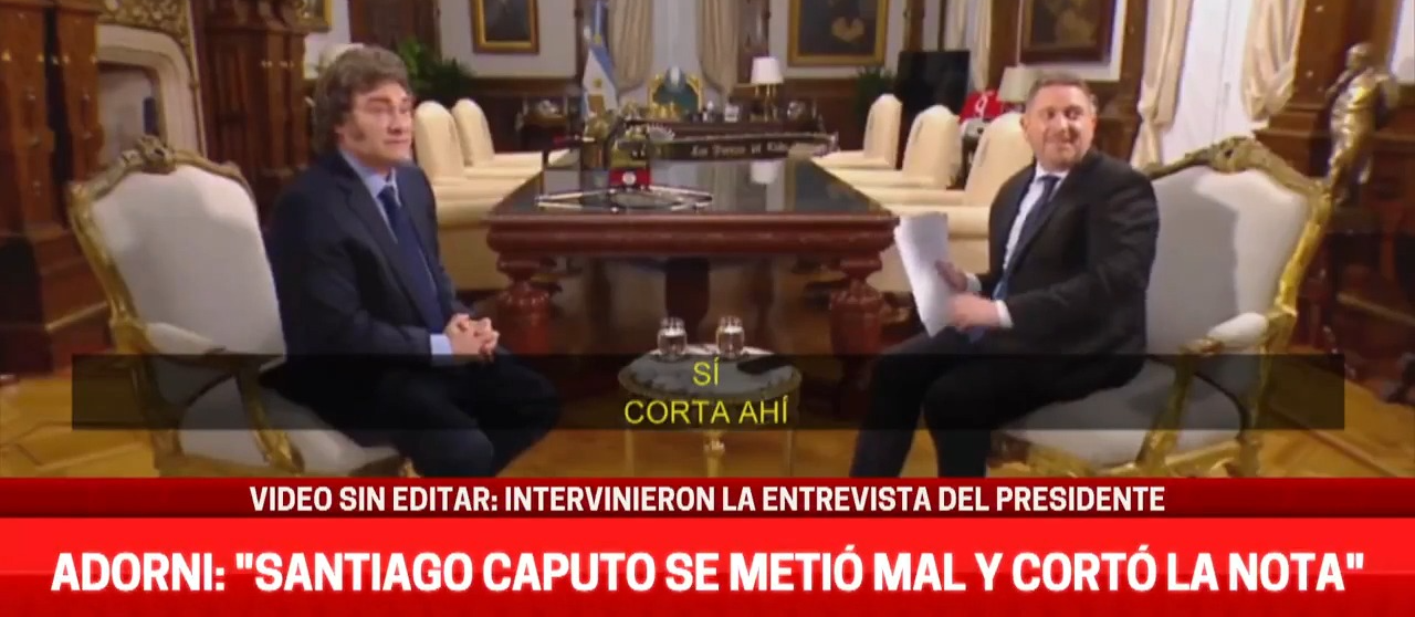 En medio de la nota se metió Santiago Caputo para evitar que saliera al aire otro papelón de Milei, ante el visto bueno de Viale, que entendía las circunstancias, claro, se trataba de una nota pautada.