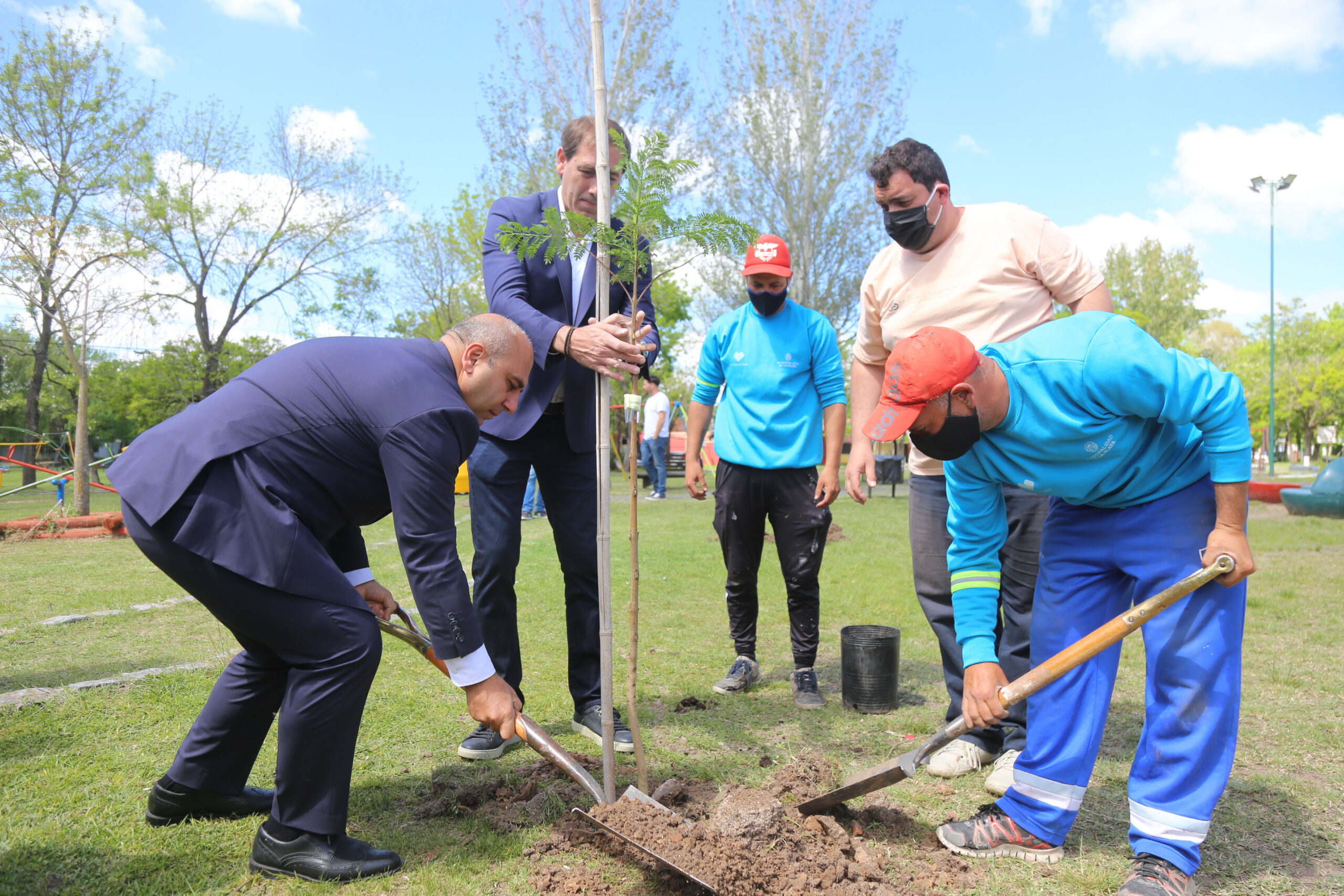 El intendente de La Plata, Julio Garro, junto con el Embajador de Azerbaiyán en Argentina, Rashad Aslanov, participaron hoy de la plantación de cien nuevos árboles que fueron donados por la Embajada a la ciudad. Además, estrecharon lazos y formalizaron el vínculo para futuros proyectos.
