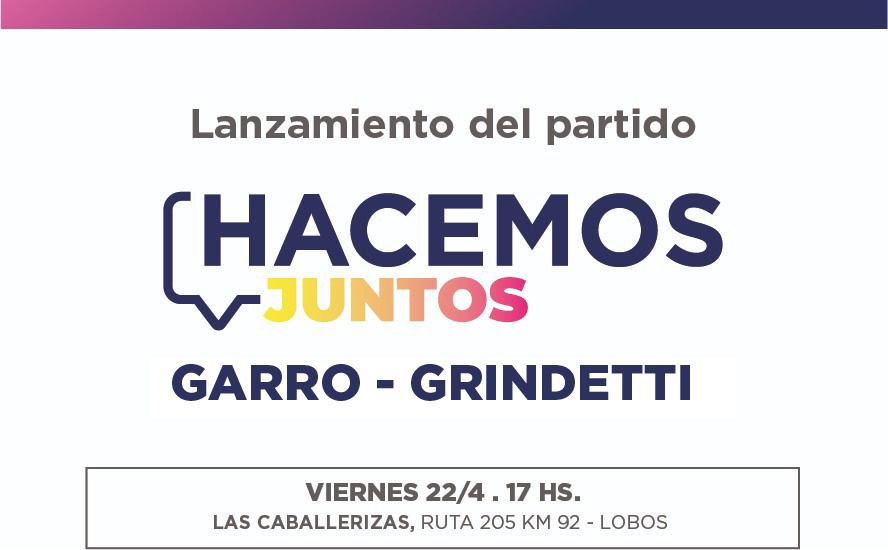 La presentación de “Juntos Hacemos”, la alternativa política interna al frente electoral Juntos en la provincia de Buenos Aires será presentada el 22 de abril desde el municipio de Lobos, la ciudad donde nació el ex presidente Juan Domingo Perón.