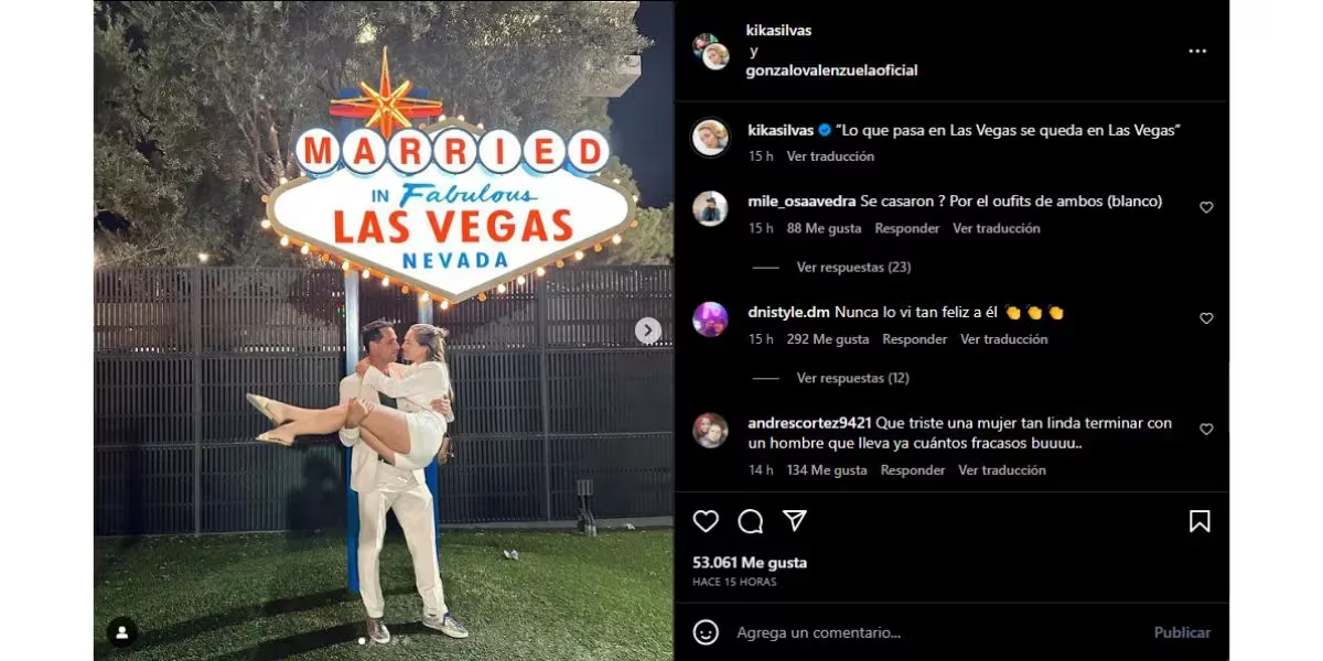 La noticia es que Gonzalo y Kika ya serían marido y mujer. Porque, en las últimas horas, una publicación bomba de Kika develó la incógnita que Valenzuela había planteado cuando, en el contexto de una nota, respondió con evasivas y risas incómodas cuando le preguntaron sobre su actual estado civil.