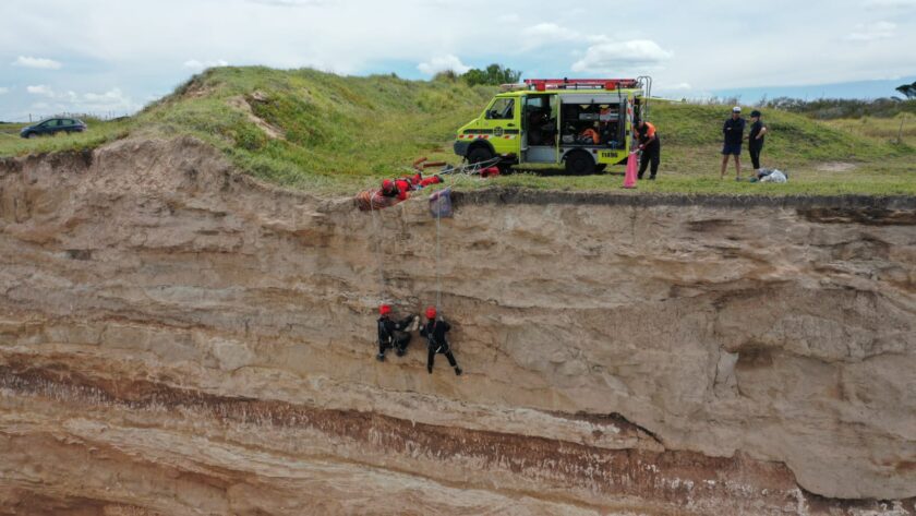 Para concretar la intervención, dos operadores de Riesgos Especiales descendieron de manera controlada utilizando técnicas de acceso vertical en formato espejo. Este método permitió garantizar la protección del fósil durante todo el proceso y retirarlo de manera segura. Por su parte, el personal de Defensa Civil se ocupó de despejar la zona y controlar el espacio para la intervención.