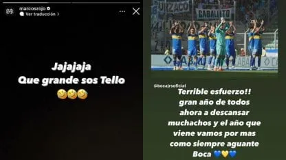«Ja, ja, ja Que grande sos Tello», posteó el futbolista que no viajó a San Luis por estar recuperándose de haber sido intervenido del ligamento externo de la pierna derecha y recién podrá volver a jugar en junio del año próximo.