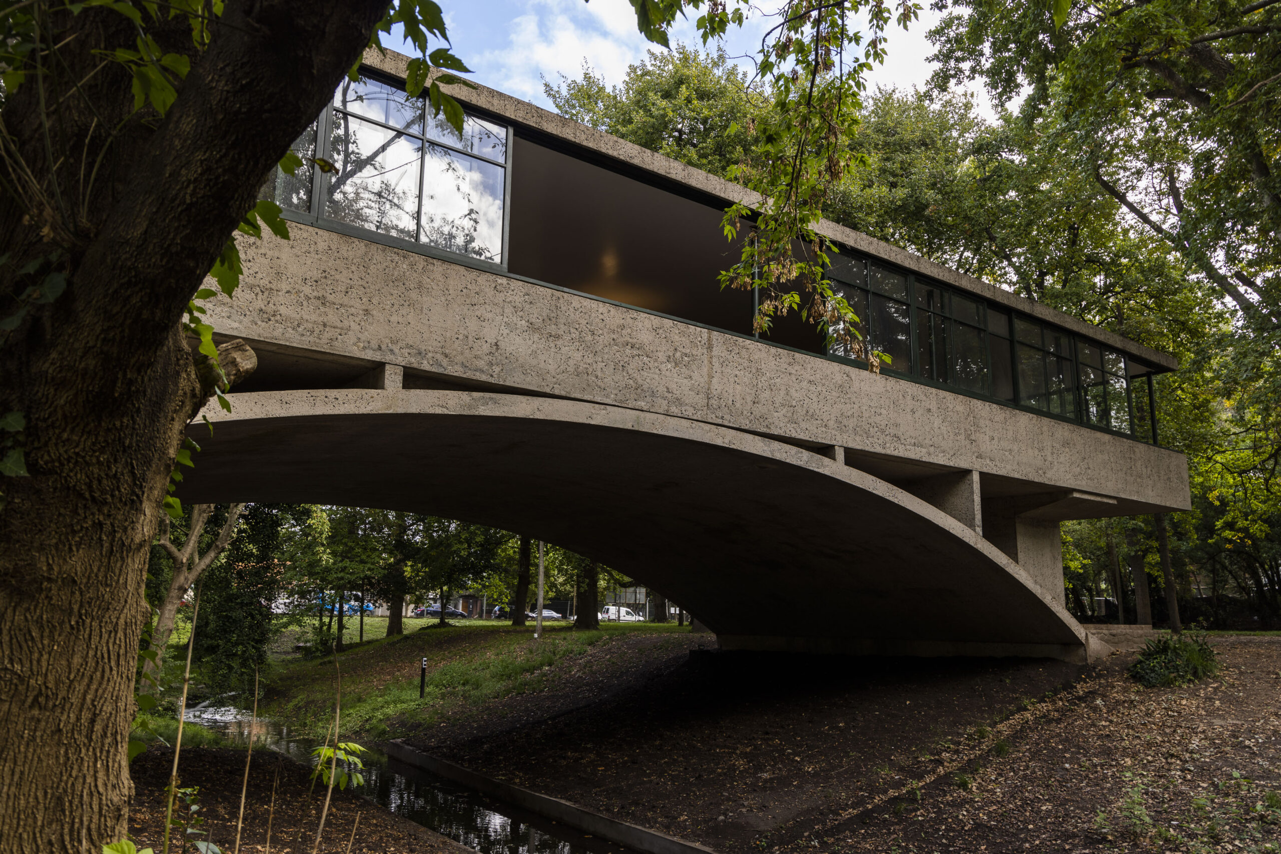 Con un ventanal infinito, fachada libre y separada del terreno, esa caja de concreto que se posa sobre el puente cruzando un arroyo es considerada una referencia obligada a nivel mundial de la arquitectura modernista del siglo XX y fue declarada Monumento Histórico Artístico Nacional.
