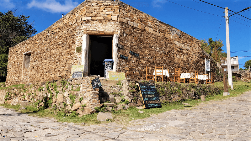 En esta casa se puede observar el estilo de construcción utilizado en La Carolina. Las construcciones originales eran de piedras unidas por barro, techos de chapa o paja siguiendo un mismo diseño arquitectónico. El uso de la piedra genera variadas texturas y una homogénea coloración que se integra al paisaje natural.