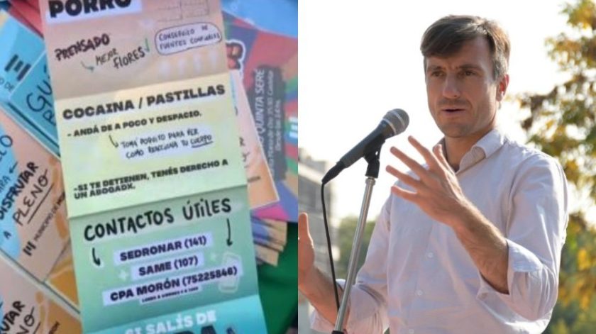 “Acordate de estos consejos: el porro conseguilo de fuentes confiables. Con la cocaína y las pastillas andá de a poco y despacio. Tomá poquito para que ver cómo reacciona tu cuerpo”, decía uno de los folletos a modo de consejos para un consumo responsable de aquellas sustancias. En el marco del festival cultural “La Minga” -que se realiza desde 2001- se generó una fuerte polémica por la difusión de la campaña llevada adelante por la Dirección de Políticas para Juventudes del municipio de Morón.