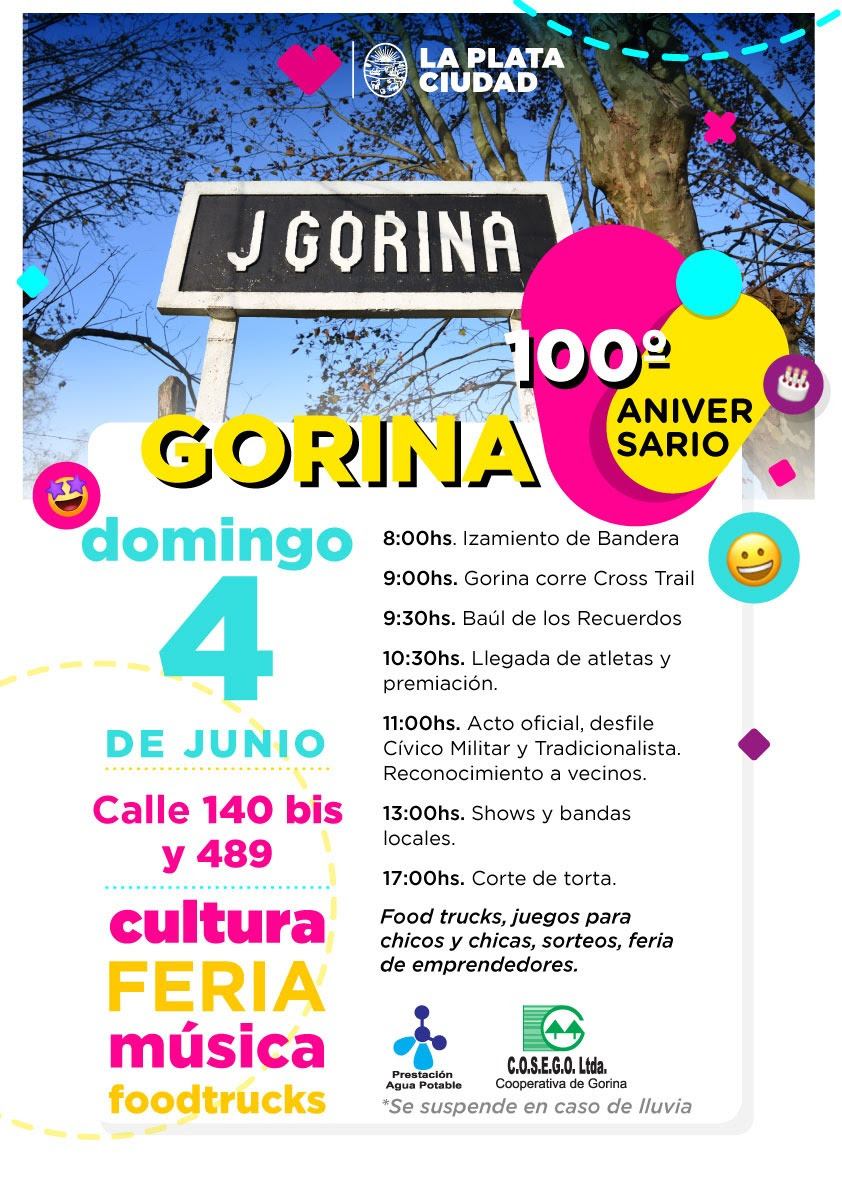 Por otro lado, el domingo 4 de junio se llevará a cabo el evento central del 100º aniversario, que iniciará con el tradicional izamiento de bandera e incluirá también la iniciativa ‘Gorina Corre Cross Tail’, una competencia deportiva que propone recorrer diferentes senderos de la zona.