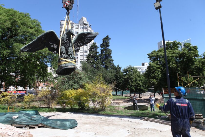 «Este jueves finalizó la remoción del águila, que estaba unida a su base por 14 remaches de bronce de casi 17 centímetros de longitud por 16 milímetros de diámetro. De este modo, se removieron las piezas existentes y se pudo desconectar de su base», precisó el informe técnico.