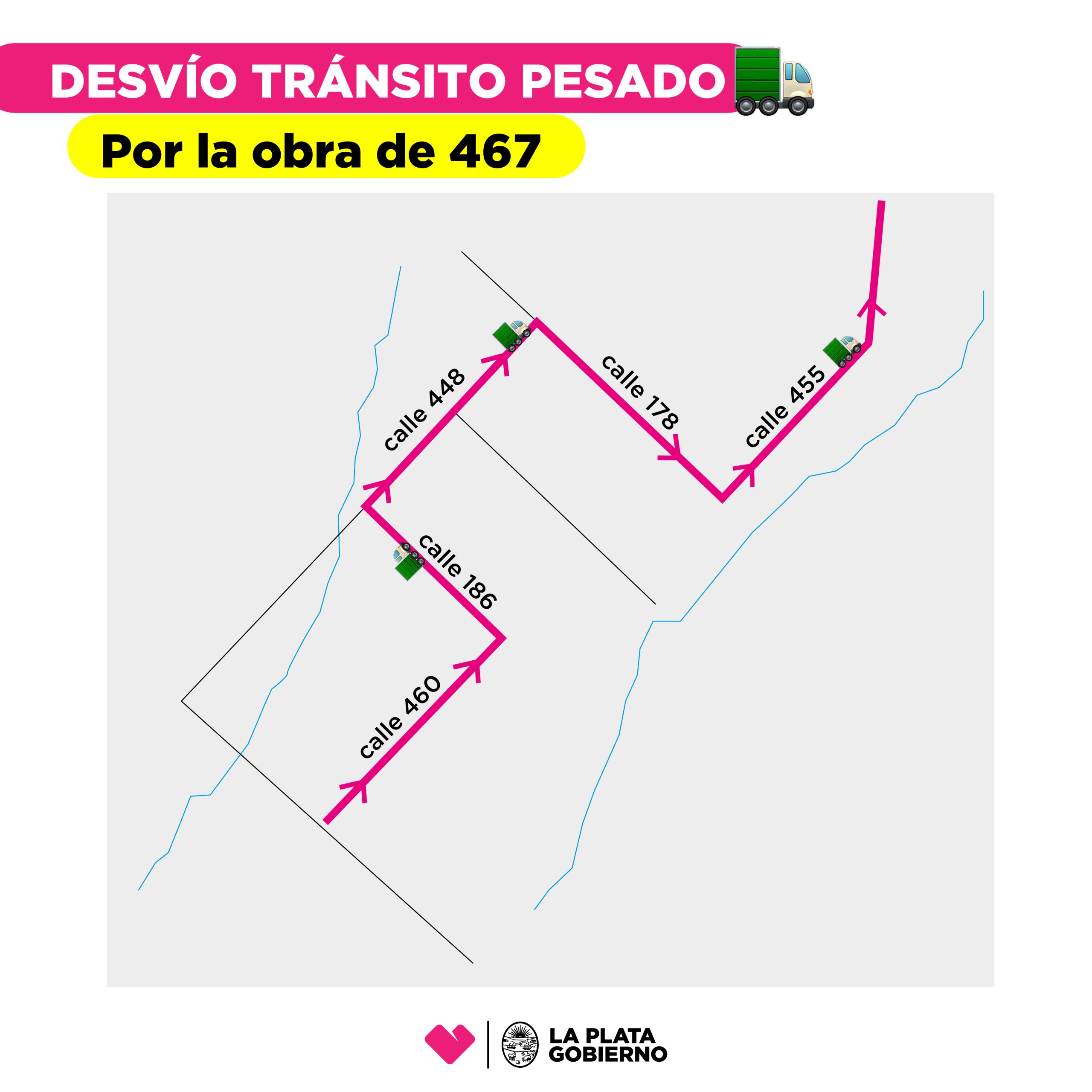 Según se informó desde la Comuna, el desvío tiene lugar en la intersección de las calles 475 (que se convierte luego en 467) y 186, donde los rodados son redirigidos por la Avenida 520 o la calle 460 para evitar que transiten por el tramo recientemente intervenido.