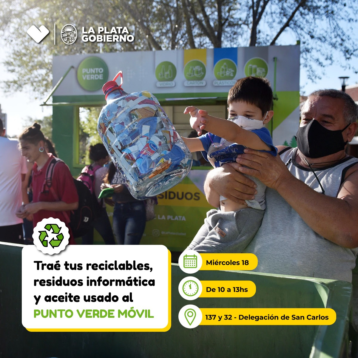 La Municipalidad de La Plata instalará mañana el Punto Verde móvil en la delegación de San Carlos, con el objetivo de que los vecinos de la zona puedan acercar residuos reciclables para su posterior separación y reutilización.