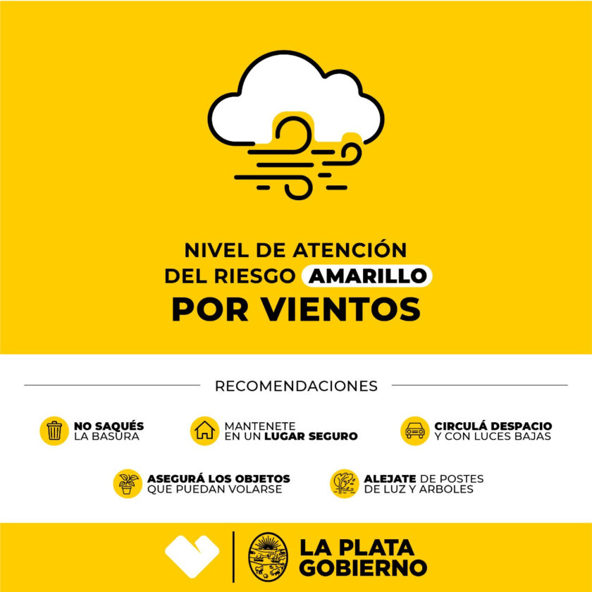 La Municipalidad de La Plata elevó el Nivel de Atención del Riesgo ‘Amarillo’ por ráfagas de vientos y tormentas que se prevén para la tarde/noche del viernes, por lo cual se dispuso a su vez un operativo de control y monitoreo permanente por parte de las áreas operativas.