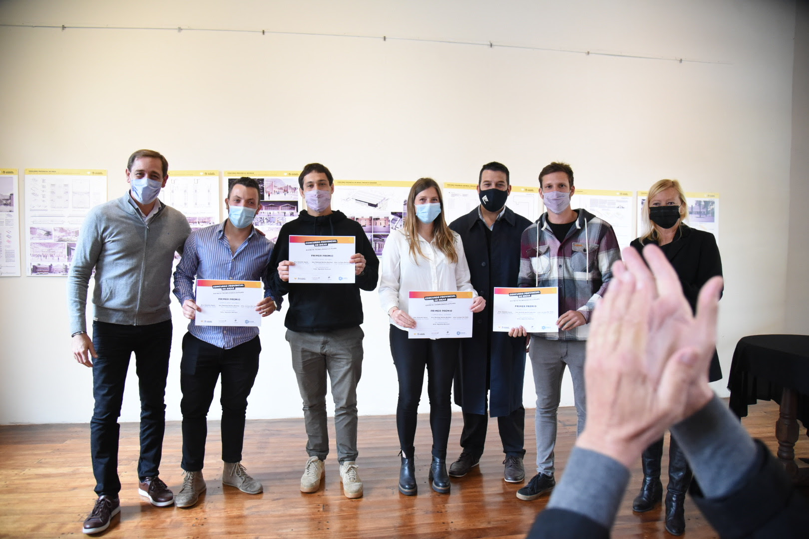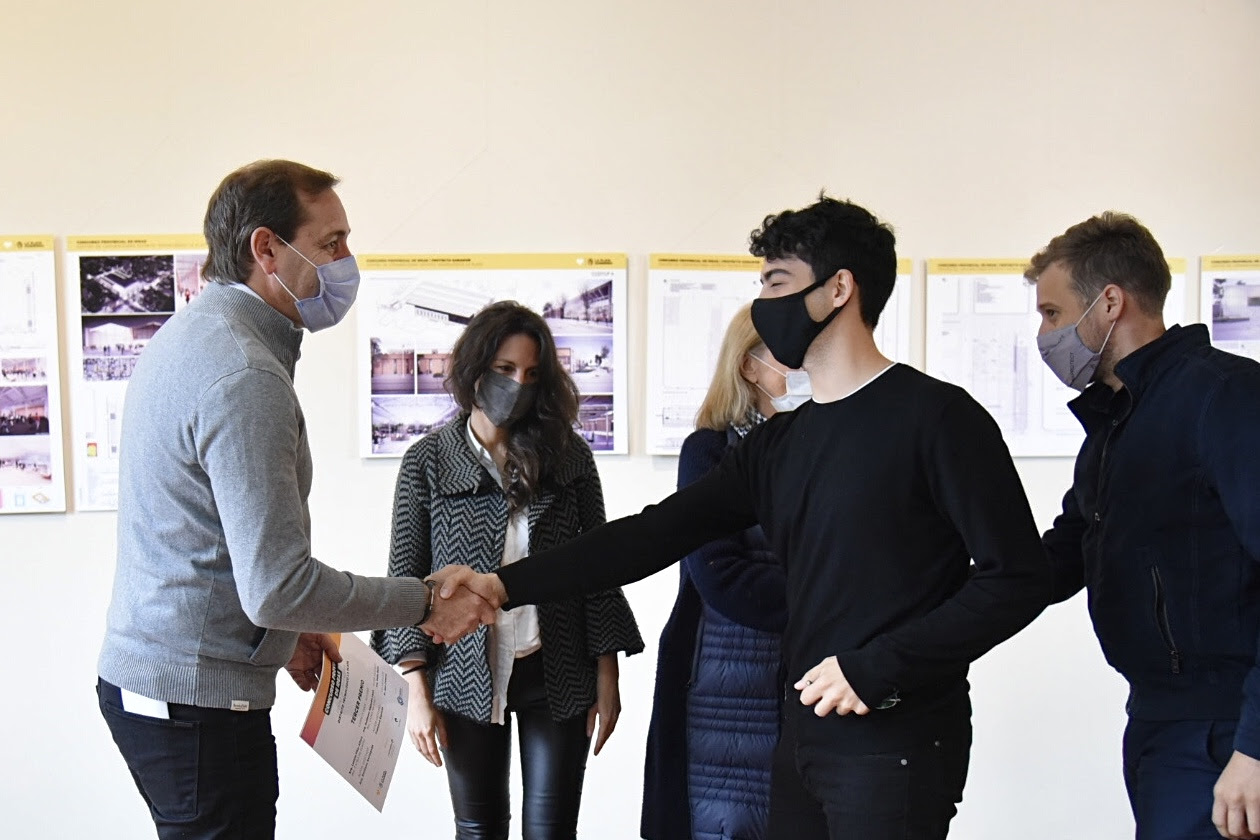 Acompañado por autoridades del Colegio de Arquitectos; la Secretaria de Planeamiento Urbano de la Comuna, María Botta; el Secretario de Cultura y Educación, Martiniano Ferrer Picado; y de los miembros del Jurado; el mandatario platense destacó a los arquitectos Valentín Ayala, Luciano Del Valle y Rodrigo Ballina Benites, creadores del proyecto ganador para la creación del Centro de Convenciones Distrito Tecnológico La Plata.