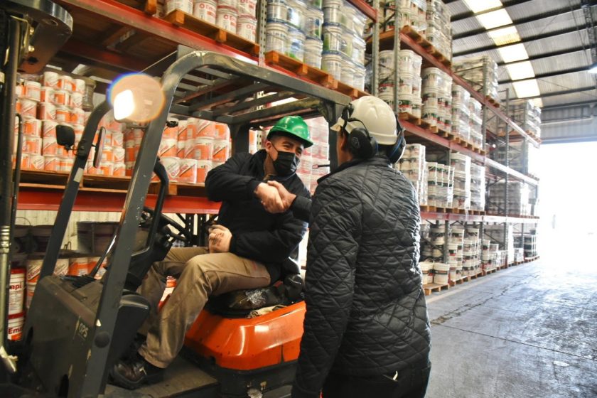 Acompañado por autoridades y personal de la empresa familiar, el jefe comunal visitó el edificio ubicado en 520 y 200, el cual cuenta con dos máquinas robot importadas de Japón y un sistema de automatización de envasado y paletizado automático.