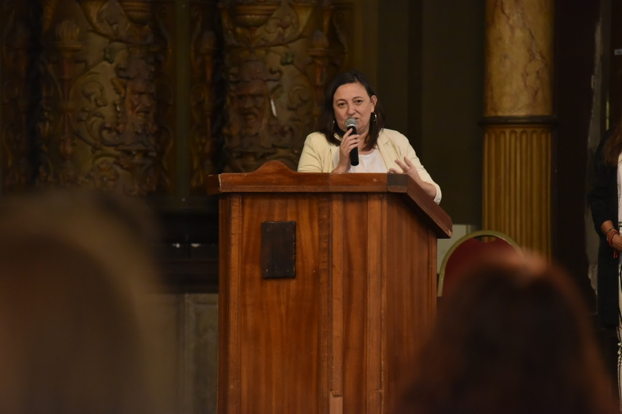 Durante su disertación, la psicóloga y escritora explicó diferentes formas de entendimiento a través del nuevo lenguaje, y sostuvo que “mediante la palabra tenemos la posibilidad de modificar la narrativa personal que estamos viviendo y transitando”.