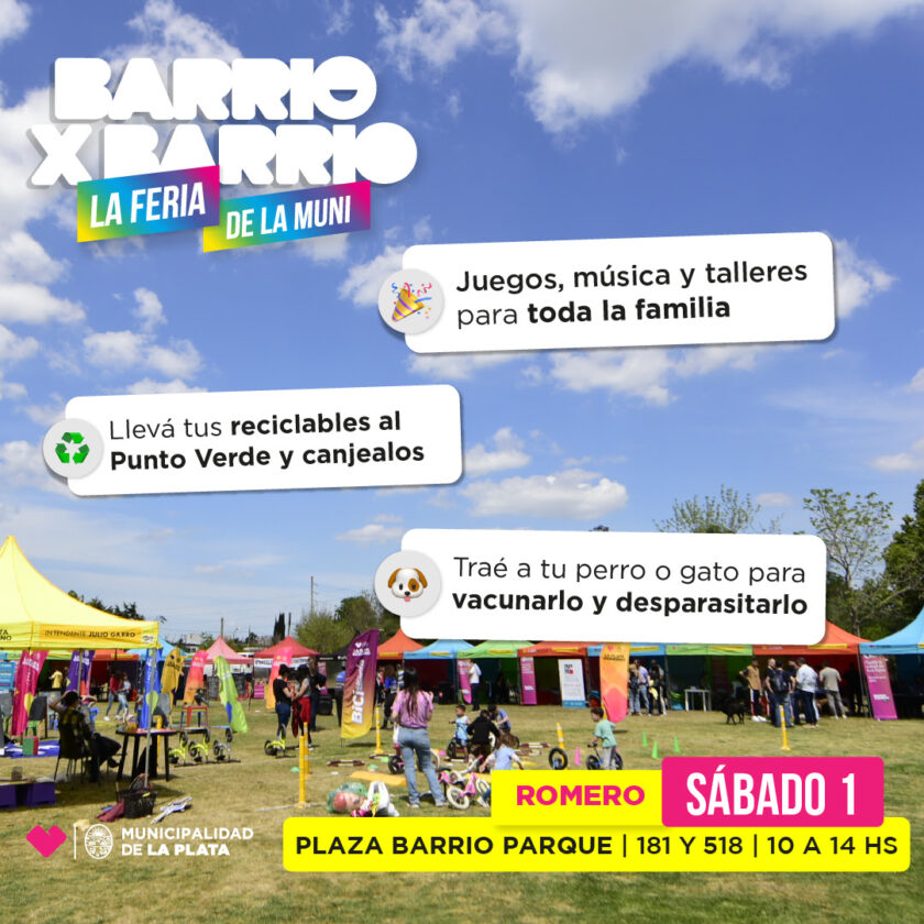 Con talleres ambientales, chequeos médicos y espectáculos culturales, la Municipalidad de La Plata llevará adelante una nueva jornada del programa itinerante ‘Barrio x Barrio’ el sábado en Melchor Romero.